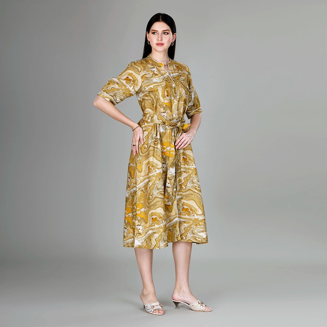 Design: Printed all over floral shirt dress with a belt