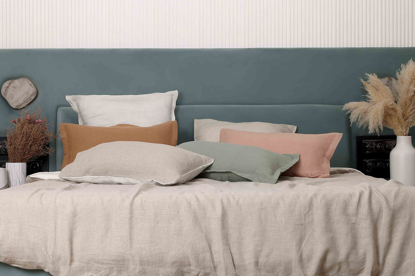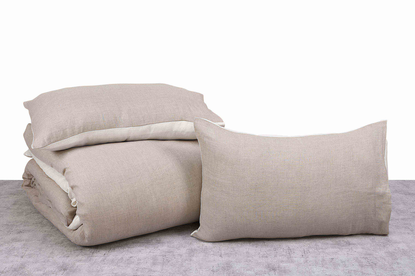 Natural Solid Colour Pure Linen Duvet Cover With Reversable Bleach Colour Back.