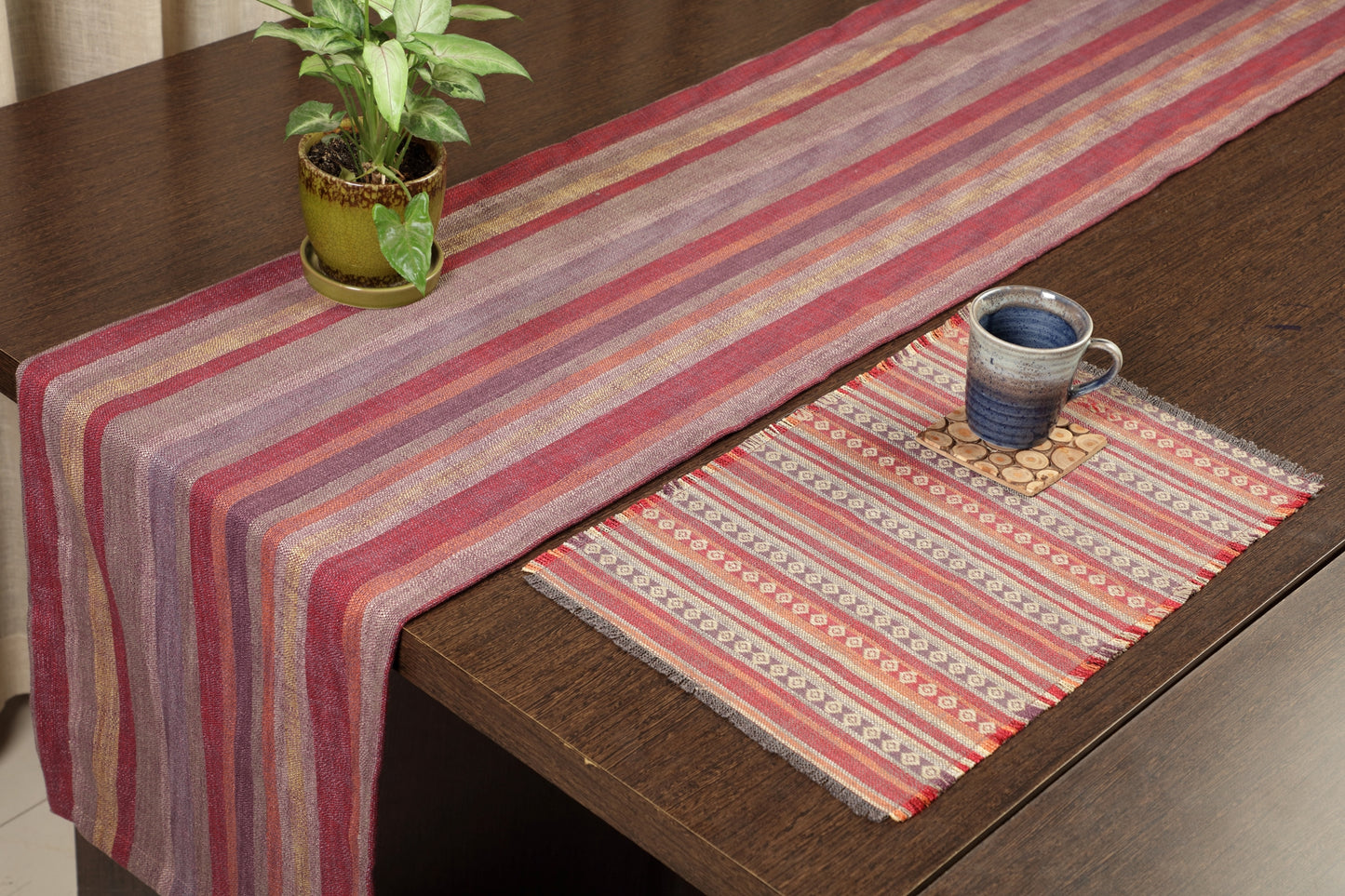 Linen and Linen - Kyoto Stripe Woven Table Runner - Red