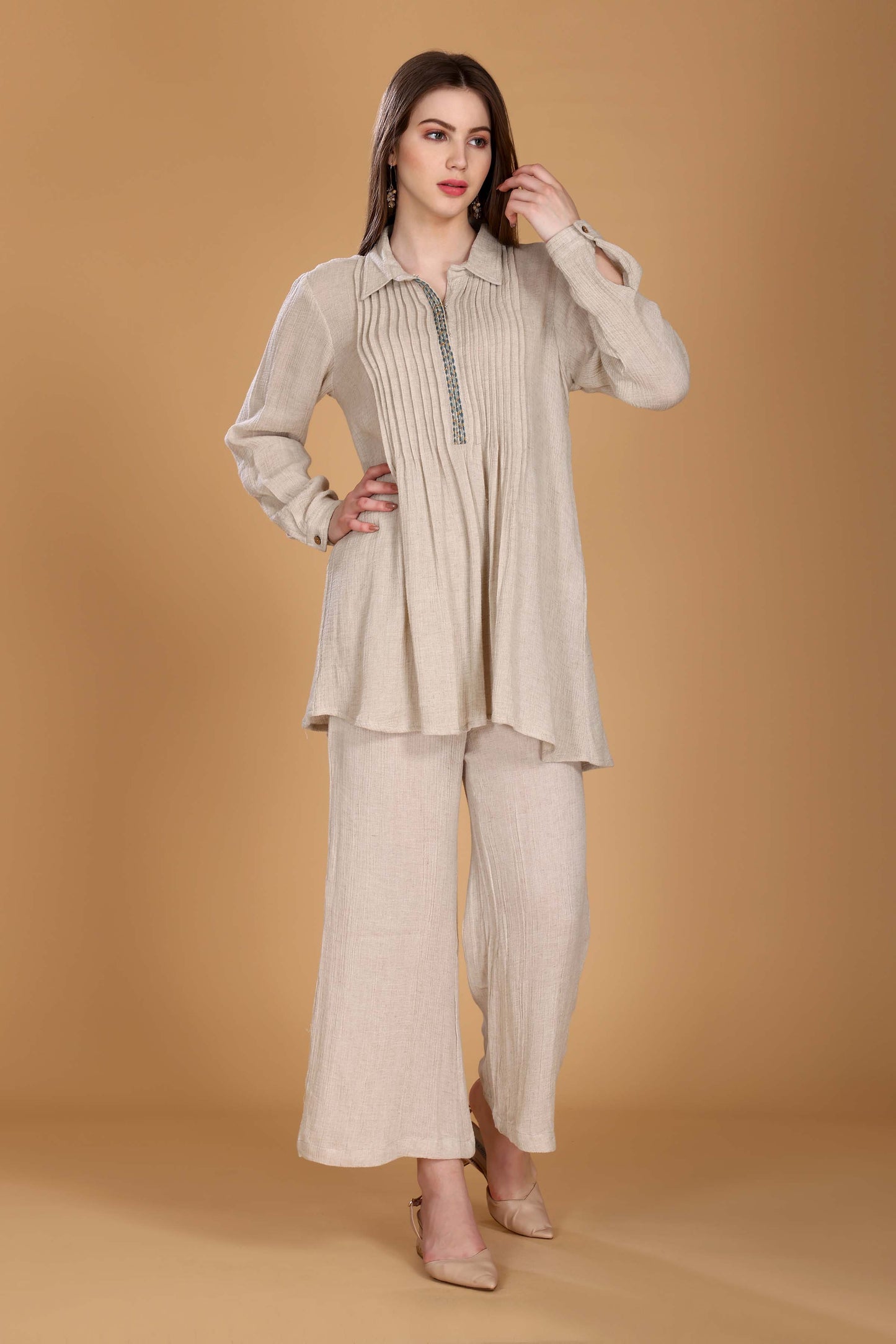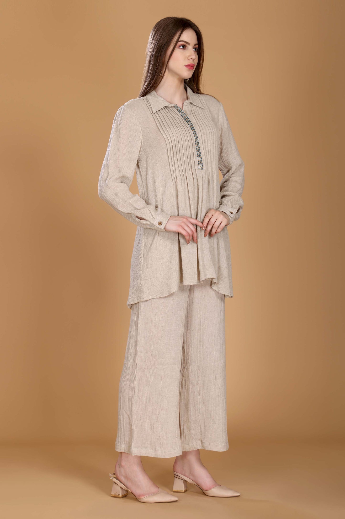 Bisque Pleated Top